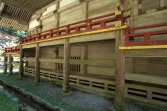 ![]() 祇園岩 ![]() 大威徳石(だいいとく) ![]() 古墳? ![]() ![]() 石造宝塔 ![]() 手水舎 ![]() 橋殿橋 ![]() 大宮川 ![]() ![]() 西本宮楼門(重文) ![]() ![]() 楼門、棟持猿 ![]() 柿 ![]() 柿の実 ![]() ![]() 西本宮拝殿(重文) ![]() ご神木の桂の木 ![]() 西本宮本殿(国宝) ![]() 西本宮本殿前面に一間の向拝が付く。 ![]() 西本宮本殿七社の本殿上の獅子・狛犬 ![]() 西本宮本殿背後、後ろ側に庇は付かない ![]() 西本宮縁高欄 ![]() 西本宮、一番下の向拝下の床を浜床(鐘打)という。 ![]() ![]() 西本宮、下殿(げでん) ![]() 下殿、献饌のための台、「案(あん)」 ![]() 社殿、浜床の周りを溝が囲んでいる。 ![]() 溝には、水が引かれている。 ![]() 竹台、本殿の両端に二つある。 ![]() 大宮竈殿社、祭神は奥津彦神(おきつひこのかみ)、奥津姫神(おきつひめのかみ)