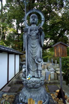 退蔵院(たいぞう-いん)は、妙心寺の塔頭の一つになる。山内塔頭で天授院に次いで古く、「屈指の古刹」といわれている。室町時代作庭の庭と、新たに作庭された現代の庭で知られている。 臨済宗妙心寺派。 「ミシュラン・グリーンガイド・ジャポン 2つ星観光地(庭園も2つ星)」(改訂第4版)に選ばれている。余香苑は、アメリカ合衆国の日本庭園専門誌"Sukiya Living Magazine, The Journal of Japanese Gardening"の「しおさいプロジェクト」「日本庭園ランキング(数寄屋生活空間)」に、2017年に第17位に選ばれている。「美しき日本-いちどは訪れたい日本の観光遺産」(日本交通公社、1999年)の一つに認定された。 ◆歴史年表 創建の詳細、変遷は不明。 室町時代、1395年、妙心寺3世・無因宗因(むいん-そういん)は、越前の豪族・波多野出雲守屋敷内(下京区、千本松原)に退蔵院を建立したという。(「寺院明細帳」) また、1404年、波多野出雲守重通が、無因を開山として、同家下屋敷に創建したともいう。(寺伝)。同年、妙心寺7世・日峰宗舜(にっぽう-そうしゅん)は、霊雲院の東に移転したともいう。(「退蔵院文書」) 1459年まで/長禄年間(1457-1460)/15世紀(1401-1500)前半、日峰宗舜が妙心寺塔頭・霊雲院の東に移した。「臥雲日件録」には「花園退蔵院」の名がある。後に、さらに妙心寺塔頭・東林院の東に移される。 応仁・文明の乱(1467-1477)で焼失した。 永正年間(1504-1521)/1509年以降、中興の祖・妙心寺34世・亀年禅愉(きねん-ぜんゆ、照鑑祖鑑)により現在地に移されたという。 1509年、利貞尼の妙心寺拡張に伴い、現在地に移るともいう。境内は、現在の退蔵院境内南すべてを含むものだったという。(『妙心寺史』) 1522年頃、亀年禅愉が山内東林院の東に無明院を創建する。千本大宮より庵を移し退蔵院としたともいう。 その後、霊雲院が現在地に創建され、無明院が合併される。その所領も有する。利貞尼(1455?-1536/1537)により現在地が寄進された。退蔵院を移転し、その後、亀年禅愉によって中興された。この頃、「元信の庭」も作庭される。 近世初頭(安土・桃山時代)、檀越の豪商・比喜多宗味、その子で5世・千山玄松(せんざん-げんしょう)により整備される。玄松は大岩庵(だいがんあん)、艮庵(ごんあん)を併合する。以後、比喜多家の菩提寺になる。 1602年、現在の方丈が建立される。 近代、1931年、庭園「元信の庭」は、国の名勝・史跡に指定された。 現代、1966年、中根金作により庭園「余香苑」が作庭される。 2011年、「方丈襖絵プロジェクト」が始まる。 ◆無因 宗因 鎌倉時代後期-室町時代前期の僧・無因 宗因(むいん-そういん、1326-1401)。男性。興文圓慧。尾張(愛知県)の平氏、荒尾一族の生まれ。9歳で建仁寺塔頭・可翁宗然(かおう-そうねん)の室に入り、出家した。1361年、妙心寺2世・授翁宗粥(じゅおう-そうひつ)の室に入り、1371年、印可を受ける。1381年、妙心寺3世になる。1395年、千本松原の波多野出雲守屋敷内に退蔵院を建立した。大徳寺への誘いを断り、1396年、西宮・天海清寺を創建する。同寺・光澤庵に住し没した。75歳。 同寺と退蔵院(北区)の光沢塔にも分骨された。 ◆波多野重通 室町時代の武将・波多野重通(はたの-しげみち、?-?)。詳細不明。男性。道元の外護者である波多野義重の一族。退蔵院の外護者だった。 ◆日峰 宗舜 南北朝時代-室町時代前期の臨済宗の僧・日峰 宗舜(にっぽう-そうしゅん、1368-1448)。男性。俗姓は藤原、諡号は禅源大済禅師、霊鑵慈光、後に河嶋。山城(京都府)の生まれ。1376年、9歳で天竜寺・本源庵の岳雲周登の弟子になり、諱は昌昕(しようきん)と称した。1387年、伊勢・光讃寺で修行する。1388年、遠州・方広寺・無文元選(むもん-げんせん)、1391年、美濃・大円寺・南山勲(なんざんくん)、1398年、摂津(兵庫県)・海清寺・無因宗因(むいん-そういん)のもとで修行した。無因の歴住に同行し、1406年、無因より印可を得て宗舜に改める。1411年、美濃の無著庵、1412年、伊勢の金剛証寺、尾張・八葉蓮台寺で修行する。1415年、犬山・青竜山瑞泉寺を開き無因を勧請開山にした。1429年、妙心寺に住し、細川勝元の支援により応永の乱で没収後の寺産を復して再建した。1432年、妙心寺中興のために養源院を建てる。1447年、関山派として初めて大徳寺に入寺した。養源院で亡くなる。81歳。 妙心寺の中興開山になる。 ◆亀年 禅愉 室町時代後期の臨済宗の僧・亀年 禅愉(きねん-ぜんゆ、1486-1561/1562)。男性。俗姓は遠山。山城(京都府)の生まれ。1502年、16歳で龍安寺の特芳禅傑(とくほう-ぜんけつ)の下で出家した。建仁寺・月舟寿桂、雪嶺永瑾(せつれい-えいきん)に学ぶ。後、霊雲院・大休宗休(だいきゅう-そうきゅう)の室に入り、印証を密付された。1522年、妙心寺山内に無明院を創建する。妙心寺34世になり、住持10余年の間に、梵鐘「黄鐘調」を嵯峨浄金剛院より求める。第105代・後奈良天皇の帰依を受け、照天祖鑑国師の号をおくられた。著『法語集』。75/76歳。 ◆如拙 室町時代前期の画僧・如拙(じょせつ/に