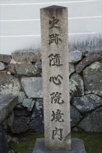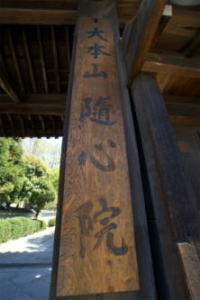 京都市の東南に位置する小野郷(おののごう)は、古来より小野氏の勢力地だった。随心院(ずいしん-いん)は、その郷の南に位置し、小野小町の旧跡だったという伝承がある。 「小野随心院」、「小野門跡」、「曼荼羅寺(まんだらじ)御殿」とも称された。山号は牛皮山(ぎゅうひ-ざん/さん)という。 小野真言宗善通寺派の大本山、本尊は如意輪観音坐像。 美人祈願、恋文上達、所願成就などの信仰がある。 ◆歴史年表 平安時代、991年、弘法大師の法孫・真言宗の仁海(にんがい)僧正の開基による。第66代・一条天皇にこの地小野を贈られ、修行のための一宇を建立したことに始まるという。当初は、「牛皮山曼荼羅寺(ぎゅうひざん-まんだら-じ)」と称した。以来、真言宗小野流発祥の地になった。 1110年、成尊は、曼荼羅寺に多宝塔を建てた。塔内に等身大の大日如来像を安置した。(「江都督納言願文集」一) 鎌倉時代、5世・増俊(ぞうしゅん)阿闍梨は、曼荼羅寺の塔頭(子房)として、寺号を「随心院」に改めた。中興の祖とされる。法流は随心院流と呼ばれた。 貞応年間(1222-1224)、6世・顕厳(けんごん)は、法験により護持僧になる。第84代・順徳天皇、第86代・後堀河天皇、第87代・四条天皇の勅願所になる。 1221年、承久の乱により焼失した。 1229年、7世・親厳(しんがん)の時、後堀河天皇により門跡号の宣旨を受ける。以来、「小野曼荼羅寺御殿随心院門跡」と称したという。随心院は曼荼羅寺を領掌する。その後、九条家よりの入寺が続き、紀伊国井上本庄など多くの寺領を有した。 室町時代、応仁・文明の乱(1467-1477)により焼失している。その後、荒廃する。その後、毘沙門谷に移され、九条唐橋(西寺付近)、相国寺東、東寺に坊舎を定めたという。その後、一時途絶した。(『随心院史略』) 安土・桃山時代、慶長年間(1596-1615)、増護により現在地に戻り復興されたともいう。 1599年、九条家より入った24世・増孝により、曼荼羅寺旧跡に本堂などが再興されたともいう。幕府より612石の寺領を寄進される。(「京都御役所向大概覚書」)。以後、五摂家の九条家、二条家からの門跡の入寺も続く。豊臣秀頼の寄進を受ける。 江戸時代、1609年、徳川将軍家は312石の寺領を寄進する。後に300石加増される。 寛永年間(1624-1644)、現在の薬医門、玄関、書院が建立された。 宝暦年間(1751-1764)、能の間が九条家の寄進により建立された。 1753年、現在の総門、庫裏が二条家より移築された。 28世・増護(?-1875)の時、第121代・孝明天皇(1831-1867)の信仰を得て、数度の御願法要を奉修した。 近代、1871年、江戸幕府の定めた三門跡制(宮門跡、摂家門跡、准門跡)は廃止になり、門跡の称号も廃された。 1885年、旧門跡は復称をゆるされた。 1907年/1908年、独立して真言宗小野派30カ寺の本山になる。 1931年、善通寺派に改称し、総本山になる。 現代、1966年、6月、境内地(社寺跡・旧境内)は、文化財保護法による史跡名勝天然記念物に指定される。 1991年、能の間の改修が行われた。 ◆仁海 平安時代中期-後期の真言宗の僧・仁海(にんがい/にんかい、951/954-1046)。男性。俗姓は宮道、通称は小野僧正・雨僧正。和泉国(大阪府)の生まれ。父・宮道惟平。7歳から、高野山・雅真(がしん)に師事し得度した。990年、醍醐寺・元杲(げんこう)に灌頂を受けた。991年、山城に曼荼羅寺(随心院の前身)を開く。1018年、畿内大旱魃で勅命により、神泉苑での祈雨法を修した。霊験あり、権律師に任じられる。1023年、藤原道長らを高野山登山に導き支援を得て高野山を復興した。東寺の二の長者になる。 1029年、東大寺別当、1031年、東寺長者に任じられる。1038年、僧正に任命された。長元年間(1028-1037)に2度、長久年間(1040-1044)に4度など、9回の祈雨の効験があった。雨僧正・雨海僧正と呼ばれ、宋にも伝わる。「胎蔵界礼懺」の撰者、著『小野六帖』など。96歳。 醍醐寺の修験僧であり、稲荷山でも行した。宮門を輦車に乗ったまま出入りすることを許された。弟子も多く、成尊、覚源、真覚などがいる。真言宗小野流の祖になる。 ◆成尊 平安時代後期の真言宗の僧・成尊(せいぞん、1012-1074)。男性。通称は小野僧都。奈良の生まれ。父・延命麿。天台宗・成尋と同母弟ともいう。仁海について出家し、1039年、伝法灌頂を受ける。仁海に認められ、曼荼羅寺を付属される。2世になる。1065年、勅命を受け、神泉苑で請雨経法を修し霊験を現した。第71代・後三条天皇の信頼篤く護持僧になる。1065年頃、天皇即位を祈り愛染王法を修した。1072年、東寺一長者になる。著『小野六帖口決』など。63歳。 弟子に義範、範俊があり、後に両者は対立し醍醐、小野の2派に分かれた。 ◆増俊 平安時代後期の真言宗僧・増俊(ぞうしゅん、1084-1165)。詳細不明。男性。通称は中納言阿闍梨。勧修寺の厳覚(ごんかく)から灌頂を受けた。後、仁海(にんがい)が開いた小野の曼荼羅寺を復興し、随心院に改めた。随心院5世、中興の祖になる。法流の随心院流祖であり、小野三流(ほかに厳覚門の宗意、寛