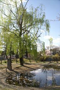 二条城の北西に位置する二条公園は、平安時代末期の武将・歌人、源三位源頼政の「鵺(ぬえ)」退治にまつわる地になる。 射落とされた鵺を祀った鵺大明神(ぬえ-だいみょうじん)がある。宮中式内社とは関係がないとされる。鵺池がある。 ◆歴史年表 創建の詳細は不詳。 平安時代、付近一帯は内裏、朝堂院、太政官などが建ち並ぶ平安京の中枢地域だった。当地付近には、宮内省が置かれたという。 江戸時代、元禄年間(1688-1703)、京都所司代下屋敷が置かれた。庭に鵺池が残されていた。 近代以降、屋敷は取り壊され、監獄が建設される。 1921年、監獄は山科に移転した。 1928年、第124代・昭和天皇即位記念の「大礼記念京都大博覧会」に際し、児童遊園地が造られた。 1929年、鵺大明神が建立された。 その後、「二条児童公園」として整備される。 1936年、鵺池碑が立てられた。 現代、2005年、公園の改修工事に伴い、公園の北側にあったとみられる「鵺池」が復元されている。 ◆源 頼政 平安時代後期の武将・歌人・源 頼政(みなもと-の-よりまさ、1104-1180)。男性。源三位(げんざんみ)入道、法名は真蓮、頼円。摂津(大阪府・兵庫県)源氏の生まれ。父・源仲正、母・藤原勘解由次官友実の娘の長男。摂津渡辺党の棟梁。白河上皇(第72代)に仕えた。1156年、保元の乱で、源義朝に従い、第77代・後白河天皇を警固、源為家・為朝と戦う。後白河法皇をめぐり藤原通憲(信西)・平清盛と藤原信頼・源義朝とが対立した1159年、平治の乱で、平清盛方につき、平家政権下唯一の源氏になった。1176年、清盛の推挙により従三位。1179年、剃髪した。1180年、平氏追討のために以仁王を立て、平氏滅亡の契機になる。挙兵したが敗れ、三井寺の僧兵とともに南都に落ち延びる。途中、平知盛、重盛の軍に追われ、平等院境内 「扇の芝」で自刃した。77歳。 鵺退治の伝承がある。和歌に優れ「棟梁」として知られた。著『源三位頼政家集』。 ◆鵺退治伝説 平安時代後期、仁平年間(1151-1154)、第76代・近衛天皇(1142-1155)を苦しめた鵺(ぬえ)という怪鳥を、弓の名手・源頼政(1104-1180)が退治したという伝承がある。 鵺は、頭が猿、胴体は狸、手足は虎、尾は蛇という妖怪であり、夜になるとトラツグミのような不吉な声で鳴いた。毎夜、丑の刻(午前2時)になると御所に飛来したため、天皇は病になる。弓の達人といわれた武将・頼政が鵺退治のために呼ばれる。頼政は破魔の鏑矢を用意し、従者の猪早太(いの-はやた)を連れて御所に出かけた。東三条の森より湧き立つ黒雲は御殿上に棚引いた。頼政は潜む鵺を目がけ、「南無八幡大菩薩」と弓の神の名を唱え、射た。怪鳥は地面に落ち、猪早太は刀で止めを刺した。鵺の遺骸は空穂船に乗せられ、鴨川に流される。その後、天皇の病は回復したという。その鵺が落ちた地点に祠が建てられた。また、頼政は鵺退治後に、池(鵺池)で矢尻の血を洗ったという。第78代・二条天皇の応保年間(1161-1163)にも、禁中に鵺が出没し頼政が召し出された。これらは、第80代・高倉天皇(在位1168-1180)の頃ともいう。 平安時代の『平家物語』『十訓抄』、室町時代の能、江戸時代の浄瑠璃、歌舞伎などの題材になった。 ◆史跡 伝承では、射落とされた鵺が落ちたのが児童公園内であったという。北西一角には、鵺退治の際に、血の付いた鏃(やじり)を洗ったという「鵺池」が復元されている。 かつて、幕末までは池の周りに1mほどの鵺石というのがあり、触れば祟りがあると畏れられていたという。 京都市内にかつてあった鵺関連の伝承の史跡としては、「鵺石」(中京区西洞院通押小路下ル東)、「鵺の森」(東三条の森)、古墳時代の陵墓参考地だった「鵺塚/秘塚(ひめづか)」(岡崎公園運動場)などであり、現在ではすべて存在しない。地名も失われた。岡崎の鵺塚の埋葬物を埋めたという「鵺塚」(東山区月輪南陵)がある。 ◆鵺 鵺は「頭が猿、胴体は狸、尾は蛇、手足は虎」(『平家物語』)、また「頭は猿、胴は虎、尾は狐、足は狸」(『源平盛衰記』)ともいわれた。 実際には、ツグミ科のトラツグミ(30cm)という鳥であり、京都でも深い森に生息していた。ミミズ、昆虫などを捕食する。繁殖期(春-夏)の夜に「ヒー、ヒョー」と不気味な声で鳴く。曇りや雨の日にも鳴き、人目に触れることはほとんどないという。生息数は減っている。 ◆アニメ ◈アニメーション『ぬらりひょんの孫〜千年魔京〜(第2期)』(原作・椎橋寛、監督・福田道生、制作・スタジオディーン、第2期2011年7月-12月、全24話・総集編2話)の舞台になった。「鵺ヶ池(ぬえがいけ)」として登場した。 *年号は原則として西暦を、近代以前の月日は旧暦を使用しています。 *参考文献・資料 『京都・山城寺院神社大事典』、『京都府の不思議事典』、『京都歴史案内』、『平安宮ガイド』、『京都はじまり物語』、『地図で読む 京都・岡崎年代史』、『京のしあわせめぐり55』 |
