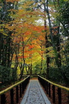 大徳寺塔頭の一つ高桐院(こうとう-いん)は、大徳寺境内西北にある。「楓の庭」で知られる。 清源院など5庵があり、高桐院派と称され、北派輪住で護持された。 臨済宗大徳寺派。本尊は釈迦如来像。 「ミシュラン・グリーンガイド・ジャポン 1つ星観光地」(改訂第4版)に選ばれている。 ◆歴史年表 創建、変遷の詳細は不明。 安土・桃山時代、1601年/1602年、細川忠興(三斎)が、父・幽斎の菩提所として建立した。開山は忠興の叔父・玉甫紹琮(ぎょくほ-じょうそう)による。以後、細川家の菩提寺になる。忠興の戒名の「松向寺殿前三議三斎宗立大居士」より、当初は「松向寺」と呼ばれたという。 江戸時代、1613年、玉甫の没後、その塔所になる。2世に賢谷宗良(けんこく-そうりょう)が就く。 1625年、清巌宗渭(せいがん-そうい)が大徳寺に入り、高桐院3世になる。 慶安年間(1648-1652)、清巌は大仙院寮舎を移築し、子院・祥林軒を建立した。 近代、1868年以後、神仏分離令後の廃仏毀釈により、子庵は破却され、什物が散逸する。高桐院客殿(本堂)も取り壊された。 明治期(1868-1912)末-大正期(1912-1926)、官僚・細川護立の寄進により現在の客殿が再建される。 現代、1971年、住職・松山剛山により、苔庭に改める。参道なども整えられた。 ◆玉甫 紹琮 室町時代後期-江戸時代前期の臨済宗の僧・玉甫 紹琮(ぎょくほ-じょうそう、1546-1613)。男性。俗姓は三淵、諡号は大悲広通禅師、別号は半泥子。山城(京都府)の生まれ。父・三淵伊賀守晴院、細川幽斎の異兄弟に当たる。大徳寺・古溪宗陳の法嗣。1586年、大徳寺130世。1588年、豊臣秀吉の命により古溪宗陳に代わり総見院2世になる。68歳。 高桐院(北区)に塔された。 ◆細川 幽斎 室町時代後期-江戸時代前期の武将・歌人・細川 幽斎(ほそかわ-ゆうさい、1534-1610)。男性。通称は万吉、与一郎、諱は藤孝(ふじたか)、別号は玄旨。藤孝、兵部大輔、法名を幽斎玄旨。父・足利幕臣・三淵晴員、母は将軍・足利義晴の側室(清原宣賢の娘)の次男、実父は義晴の4男ともいう。子に細川忠興(ただおき)。1539年、義晴の命で伯父・細川元常の養子になる。1546年、13代・義輝(よしてる)(義藤)の一字をもらい藤孝という。1553年、義晴、義藤の近江亡命に同行する。1554年、元常の死に伴い家督を相続した。1565年、将軍・義輝暗殺後、その弟・一条院覚慶(義昭)を大和興福寺より救出近江甲賀郡へ導く。1568年、織田信長の援助を得て、義昭上洛に成功した。1573年、義昭が信長に追われ、信長家臣になり西岡(長岡)を得る。長岡姓を称した。1580年、明智光秀とともに丹波、丹後平定の功により、信長より丹後一国を与えられた。宮津に居城した。1582年、本能寺の変で、姻戚・明智光秀の誘いを断わり、剃髪し嫡子・忠興に譲り、丹後田辺城に移り、隠居した。1583年、豊臣秀吉より西岡を与えられる。1586年、秀吉の九州攻め、1590年、小田原攻めに加わり、1592年、文禄の役で肥前・名護屋、薩摩などに赴く。1600年、関ヶ原の戦で徳川家康方に付き、石田三成方に攻められ田辺城に籠城した。古今伝授の廃絶を憂慮した第107代・後陽成天皇の勅命で和睦、生還する。家集『衆妙集』、著『百人一首抄』など多数。77歳。 足利義晴・義輝・義昭に仕え、織田信長、豊臣秀吉、徳川家康に重用された。有職故実、書道、千利休に茶を学ぶ。古典学者、歌人でもあり、古今伝授を三条西実枝(さねき)から受けた。二条派の正統を継承し、近世歌学の祖と称された。門下に烏丸光広、中院通勝、松永貞徳らがいる。 南禅寺・天授庵(左京区)に葬られる。 ◆細川 忠興 室町時代後期-江戸時代前期の大名・細川 忠興(ほそかわ-ただおき、1563-1646)。男性。幼名は熊千代、與一郎、号は三斎、法名は宗立(そうりゅう)、越中守。京都の生まれ。父・長岡藤孝(細川幽斎)、母・沼田上野介光兼の娘の長男。足利義輝の命により細川輝経の養子になる。1577年、織田信長に従い、雑賀(さいか)一揆に初陣する。1578年、信長の嫡子・信忠より一字をもらい忠興と名乗る。1579年、明智光秀の娘・玉(たま、細川ガラシャ)と結婚した。1580年、丹後宮津を与えられる。1582年、本能寺の変で、義父・光秀に誘われたが羽柴 (豊臣) 秀吉に従う。父と共に剃髪して弔意を示した。秀吉は玉の殺害を命じたが、忠興は玉を離別し味土野に幽閉した。後に許されて再び妻を迎える。1585年、従四位下侍従に任じられ、羽柴姓を許された。1589年、秀吉は幽斎と忠興に改めて丹後国を安堵した。1590年、小田原征伐に加わる。1593年、朝鮮に出陣、1596年、越中守になる。1598年、秀吉の死後、三男忠利を人質に出し、徳川家康に接近した。1600年、関ヶ原の戦で家康に属した。妻・玉は石田三成から人質として大坂入城を求められたが応じず、大坂玉造(たまつくり)の邸で自刃した。戦後、その功により、豊前、豊後を与えられ中津城に入る。1601年、小倉城を築き移った。1620年、病気で家督を3男・忠利譲り、中津に移り落飾して三斎宗立と号した。1632年、忠利の肥後入国に伴
