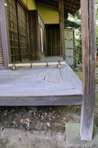 ![]() ![]() ![]() 長屋門 ![]() ![]() 「景観重要建造物 歴史的風致形成建造物 京都市」のプレート ![]() ![]() 入母屋造の式台 ![]() 居室部の内玄関、鳥居形 ![]() ![]() カンアオイ ![]() ![]() 座敷部 ![]() 座敷 ![]() 座敷の花頭窓(火頭窓) ![]() 江戸時代中期の真言宗の僧・契沖の書、天井は棹縁天井。 ![]() 三条実美の額 ![]() 縁の床板 ![]() 屋根の裏側、樋 ![]() 雨おとし ![]() 床下に空けられた竜の口 ![]() ![]() |