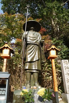 海住山寺(かいじゅうせん-じ)は、木津川市加茂、瓶原(みかのはら)の三上山(さんじょう-さん、海住山、473.3m)中腹にある。山号は補陀落山(ほだらく-さん/ふだらく-せん)という。 真言宗智山派、本尊は十一面観音菩薩。 仏塔古寺十八尊第3番札所。京都南山城古寺の会。 ◆歴史年表 創建の詳細、変遷は不明。 奈良時代、735年、第45代・聖武天皇の勅願により、東大寺開山・良弁(ろうべん)僧正が開創したという。地面より湧出したという十一面観音菩薩を本尊とし、当初は「藤尾山観音寺(かんのん-じ)」と呼ばれた。(「海住山寺縁起絵巻」)。「十一面観音寺」を前身にするともいう。また、盧舎那仏像(東大寺大仏)造立(745-752)の無事祈念のために建立されたともいう。ただ、聖武天皇の大仏造立の意志は、740年以降という。河内国・智識寺の廬舎那仏を拝して以来という。また、当初は紫香楽・甲賀寺だったという。 773年、聖武天皇の勅願により、良弁を開基とし、左大臣・藤原永手が再興したともいう。(「興福寺官務牒疏」) 平安時代、1137年、焼失している。その後、衰退する。(『海住山寺縁起』) 鎌倉時代、1208年、笠置寺(かさぎ-でら)の貞慶(ていけい/じょうけい)が移りこの地に再興した。観音の補陀落浄土への往生を望み、山号寺号を「補陀落山海住山寺」に改めた。以後、法相宗に属し、近世(安土・桃山時代-江戸時代)まで奈良・法相宗大本山の興福寺支配下にあった。 1214年、五重塔が建立された。良弁の1周忌に弟子・慈心房覚心(藤原長房)が造立したという。五重塔に仏舎利を納めたという。(『海住山寺縁起絵巻』) 室町時代、1457年、本堂が修補される。(「海阜遺編」・『海住山寺旧記』) 1459年、釈迦堂と五重塔の修理が着手される。(「奉施入海住山寺釈迦堂修理方并学習方興隆方諸種子米事」) 1463年、五重塔の屋根の葺き替えが終わる。(「鳥衾瓦篦書」) 安土・桃山時代、1582年/天正年間(1573-1592)、豊臣秀吉による検地以後、寺領地を失い衰微する。 江戸時代、1662年、旧5月、大地震があり塔婆傾き、水煙破損する。(『海住山寺古書』)。本堂が修補されたという。(「海阜遺編」・『海住山寺旧記』) 近代以降、興福寺末寺から独立し、真言宗に改宗した。 1868年、山津波で旧本堂が倒壊した。 1884年、現在の本堂が再建された。 現代、2018年、6月、大阪府北部地震で五輪塔相輪の一部が破損・落下した。 ◆良弁 奈良時代の僧・良弁(ろうべん、689-774)。男性。朗弁、通称は金鐘(こんしゅ)行者。相模国(神奈川県)・漆部氏、近江国(滋賀県)・百済氏ともいう。養育された義淵に法相、華厳宗を学んだ。728年、東大寺の前身・金鐘山寺(きんしょうせんじ)に智行僧として選ばれる。735年、藤尾山観音寺の創建、740年、新羅に留学した学僧・審祥(しんしょう)を金鐘寺に招き華厳教学を研究した。751年/752年、少僧都、初代東大寺別当に就いた。来日した鑑真を東大寺で迎える。聖武天皇の看病禅師、その功により756年、大僧都。760年、僧尼位 (三色十三階制)の整備を行う。別当を勇退後、761年、近江・石山寺の造立に尽力し、764年、僧正。華厳宗の宗祖。85歳。 いくつかの伝承がある。幼少期、金色の大鷲にさらわれ、東大寺二月堂前の大木にかけられたのを義淵に救われ、養育されたという。 ◆貞慶 平安時代後期-鎌倉時代前期の法相宗の僧・貞慶(じょうけい、1155-1213)。男性。解脱房(げだつぼう)貞慶。父・貞憲、通憲(信西)の孫。8 歳で南都へ行き、11歳で剃髪した。醍醐寺・実運より虚空蔵菩薩求聞持法を受法する。以後、各経典の研学、講師、論義を通じて学僧として活躍した。1182年、大般若経600巻の書写を完成させる。1205年、『興福寺奏状』を起草し、浄土宗開祖・法然の専修念仏停止を求めた。1208年、海住山寺を中興する。最晩年、54歳で海住山寺に移り、この地で没した。59歳。 笠置寺隆盛に尽力した。 ◆藤原 長房 鎌倉時代前期-中期の公卿・藤原 長房(ふじわら-の-ながふさ、1170-1243)。男性。法名は覚心。父・参議光長、母・参議藤原俊経の娘。1191年、蔵人、1194年、右少弁、1200年、蔵人頭、1204年、参議。1205年、後鳥羽上皇(第82代)皇女・煕子内親王の乳父となり、焼亡した院御所二条殿跡を下賜された。九条兼実・良経、兼実の娘・宜秋門院任子(後鳥羽中宮)に仕えた。1210年、貞慶の徳を慕い出家した。奈良に移り、貞慶の門人となる。慈心上人、海住山民部卿入道と号した。 73歳。 1214年、海住山寺の五重塔を建立している。 ◆仏像・木像 平安時代の「十一面観音菩薩立像」(重文)は2体ある。 ◈ 本堂、厨子内安置の秘仏である本尊「十一面観音菩薩立像」(重文)(167.7/167.9㎝)は、平安時代、10世紀作とみられる。「厄除け観音」といわれている。 宝髷から蓮華座まで一木から彫り出されている。垂らした右手で印を結び、左手に蓮の蕾を挿した宝瓶を持つ。木心が像の中央にあり、内刳りはない。裳裾、台座の返花などに奈良時代の影響も残る。奈良時代の脱活乾漆像風、創立時の本尊の摸刻風ともいう。面長下