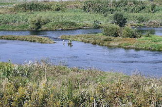 ![]() 右の鴨川と左の桂川が合流している鴨川の終点付近。南側から見ている。 ![]() 河川管理境界を示す表示板、「桂川の支川」としての鴨川の下流端は、桂川に組み込まれているということになる。 ![]() 中央から右、上流が鴨川、左は桂川ということだが、実際の桂川との合流地点は、数百m下流になる。鴨川を東側から見ている。 ![]() 実際の鴨川(手前)と桂川の合流地点。鴨川を東側から見ている。 ![]() 羽束師橋は、桂川に架けられている。 ![]() 羽束師橋から見た北側の桂川、右手奥に合流している鴨川が見える。 ![]() 羽束師橋から見た桂川の南の流れ ![]() 羽束師橋以南にある「河川管理境界」の表示 ![]() 近くの堤防には、「歩行者自転車専用道路」が整備されている。 |