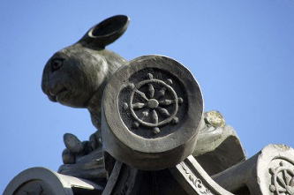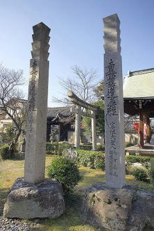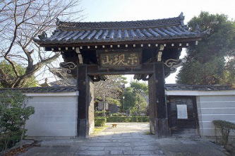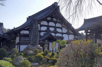 岡崎の満願寺(まんがん-じ)は、山号を示現(じげん)山という。 日蓮宗、本尊は釈迦如来像を安置する。 妙見像は、洛陽十二支妙見めぐりの5番、「岡崎の妙見さん」とも呼ばれている。京都御所から見て十二支の辰(東南東)の方角にあたる。かつて、洛陽二十八宿妙見の一つとして知られた。 ◆歴史年表 創建、変遷の詳細は不明。 平安時代、940年、菅原道真の乳母だったという多治比文子(たじひの-あやこ)は、西ノ京に道真を追悼する堂宇を建立した。開祖は、最珍(鎮)による。道真自作という天満自在天像を安置し、当初は真言宗だった。 江戸時代、1697年、宗遍僧正は、遠沾院日享(おんでんいん-にっこう)上人に帰依し、日蓮宗に改宗した。下岡崎法勝寺の旧積に移るともいう。現在の伽藍はこの時の建立ともいう。 1700年、第113代・東山天皇の時、勅願寺になる。 1701年/1702年、この地に移ったという。 1702年-1704年、現在の本堂が建てられた。(「覚書」) 1703年、鐘楼が建立された。同年、この地に移ったともいう。旧地は天神道下立売通上る(現在の玉房稲荷)にあり、境内に五ノ保社が祀られていた。1702年に日蓮僧に売却され、翌1703年に当寺は現在地に移ったともいう。 1714年、学問所、書院、玄関、庫裏なども建ち並んでいた。(「満願寺立物坪数覚書」「境内地図」) 現代、1995年、本堂、鐘楼、手水舎、表門、文子天満宮本殿・拝殿が、京都市有形文化財に指定された。 ◆多治比文子 平安時代中期の巫女・菅原道真の乳母・多治比文子(たじひの-あやこ、 ?-?)。詳細不明。女性。平安京の右京七条二坊十三町に住し、942年、天神(菅原道真)により、北野に社殿を建て祭祀するようにとの託宣を受けたという。文子は邸内に仮の祠を祭祀した。947年、北野に遷座し、同年、近江・比良の神官良種の子にも託宣があり、朝日寺の僧・最珍(鎮)らと共に霊祠を造営した。北野天満宮創始者。 ◆俊寛 平安時代後期の真言宗の僧・俊寛(しゅんかん、1143? -1179?)。男性。山城の生まれ。父・木寺法印寛雅。村上源氏源雅俊の孫。僧都になり、仁安年間(1166-1169)、父を継いで法勝寺執行になる。法勝寺領を管掌し、院関係の仏事を勤めた。1174年、八条院の御堂供養を行う。後白河院(第77代)の近習僧として仕えた。1174年、八条院の御堂供養なども行い、子・俊玄を法橋にした。1177年、平家横暴に抗し、藤原成親、成経父子、西光らと共に平氏打倒計画を企てる。謀議に、京都鹿ヶ谷の山荘を提供する。多田(源)行綱の密告で、平清盛によって捕らわれた。成経、平康頼とともに薩摩国・鬼界ケ島(硫黄島)に配流された。1178年、中宮徳子の御産に伴う大赦で成経、康頼は許され帰京した。俊寛は一人赦されず、その地で没した。(鹿ヶ谷事件)。37歳。 『平家物語』、能、浄瑠璃、歌舞伎などの題材になった。 ◆山崎久三郎 江戸時代後期の志士・商人・山崎久三郎(やまざき-きゅうざぶろう、1820-1876)。詳細不明。男性。本姓は米沢、名は兼光。京都の生れ。呉服商を営みながら尊攘派として、1863年、天誅組の変で、武器・食糧を調達した。1864年、禁門の変では長州軍に参加、のち奇兵隊に入隊し転戦した。57歳。 当寺に墓がある。「法善院宗悟日持信士」。 ◆溝口健二 近現代の映画監督・溝口健二(みぞぐち-けんじ、1898-1956)。男性。東京市の生まれ。旧制小学校、東京葵橋洋画研究所、1918年、神戸又新日報社の広告図案係を経て、1920年、日活向島撮影所に入社した。1922年、第一作「愛に甦へる日」を撮る。1923年、関東大震災のため、京都の日活大将軍撮影所に移る。初監督作品は「愛に甦る日」(1923)、1933年、入江たか子の入江ぷろだくしょんに移り、入江たか子主演の「瀧の白糸」(1933)、1934年、永田雅一が設立した第一映画社に参加し、解散後、新興キネマ、松竹下加茂撮影所に移る。リアリズムの「浪華悲歌」(1936)、祇園を舞台にした傑作「祇園の姉妹」(1936)を制作。戦後、「西鶴一代女」(1952)はヴェネツィア国際映画祭の監督賞、「雨月物語」(1953)も銀獅子賞、「山椒大夫」(1954)も銀獅子賞と3年連続で入賞した。傑作「近松物語」(1954)などがある。女性の悲しみを描き世界的な評価を得た。58歳。 満願寺境内に碑が立てられている。隣接して「大阪物語」の碑が立つ。溝口はこの次回作の準備中に亡くなった。 ◆仏像 ◈本堂に、「法華首題牌」、「釈迦如来像」、「多宝如来像」を安置する。 ◈祖師堂に「日蓮像」を安置している。堀之内本妙寺分身になる。 ◈「妙見像」(30㎝)は、亀に乗り、右手に剣、左手に蛇を持つ。鎌首をもたげている。かって法勝寺の塔頭・本光寺にあり、江戸時代中期、1774年に焼失後、当寺に遷されたという。洛陽十二支妙見めぐりの5番、辰(東南東)にあたり、「岡崎の妙見さん」とも呼ばれている。 ◆建築 表門、本堂、拝殿、書院、庫裡、鐘楼、文子天神社などが建つ。 現在の伽藍は、江戸時代前期、1697年の建立ともいう。日蓮宗伽藍建築様式の典型という。 ◆法勝寺・俊寛 境内の井戸、阿伽井(閼伽井、あ