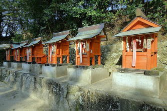 ![]() 右より、春日神社、倉稲魂神社、天神社 九元神社、市杵嶋姫神社、春日神社 *春日神社が2座ある。 |