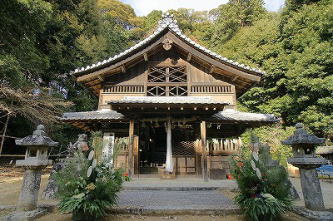 長岡京市の西にある小社の走田神社(はしりた じんじゃ)は、石段を昇りきった山腹の森に建つ。乙訓十九座の一つに数えられている。 祭神は、春日社に武甕槌神(たけみかづちのかみ)、経津主神(ふつぬしのかみ)、天児屋根命(あめのこやねのみこと)、姫大神(ひめのおおかみ)を祀る。旧村社。 五穀豊穣を祈願する農耕神として崇敬された。 ◆歴史年表 創建、変遷の詳細は不明。 かつて、妙見社、妙見菩薩神社と呼ばれていたともいう。周辺の長法寺村、奥海印寺村の産土神として祀られていた。寂照院の鎮守社だったともいう。 近世(安土・桃山時代-江戸時代)、海印寺の神宮寺になり妙見社と称された。 近代、1868年、神仏分離令後の廃仏毀釈により、合祀されていた妙見菩薩が寂照院に遷されている。同年まで、小倉神社(円明寺村)の神輿が当社まで渡御していた。 1877年、式内に比定され、走田神社と改称した。 ◆走田 走田(はしりた)とは、神嘗祭(かんなめさい)の祭祀に用いる初穂(はつほ、走りの穂)をつくる田を意味した。早稲田(わせだ、早田)の守護神という。 ◆末社 春日社(武甕槌神、経津主神、天児屋根命、姫大神)、熊野神社(伊弉諾尊、天児屋根命)、稲荷神社(倉稲魂命)、蛭子社(事代主命)を祀る。 ◆建築 本殿、拝殿、社務所などがある。 「本殿」は覆屋になっている。能舞台がある。一間社、春日造、向拝付、檜皮葺。 ◆海印寺 海印寺は、当社の神宮寺だったという。真言密教と妙見信仰が結び付き、当社は、寺の海印寺の奥の院に位置付けられたともいう。 ◆走田古墳群 走田神社から寂照院にかけての南斜面に、古墳時代後期末の走田古墳群がある。8-10号墳のうち、9号墳(寂照院本堂背後)の横穴式石室には、玄室内に組合せ式家形石棺の部材が保存されている。 ◆年間行事 歳旦祭(1月1日)、お千度祭 (勧請縄、弓講代表の高橋家が的射矢の神事を行う。)(1月13日)、祈年祭(3月中旬)、お千度祭(6月中旬)、例祭(10月21日)、秋季大祭(11月14日)、新嘗祭・火焚祭(11月28日)、除夜祭・除夜祭(12月31日)、月次祭(毎月1日)。 *年間行事は中止・日時・内容変更の場合があります。 *年号は原則として西暦を、近代以前の月日は旧暦を使用しています。 *参考文献 『京都・山城寺院神社大事典』『昭和京都名所図会 6 洛南』『京都おとくに歴史を歩く』『水無瀬神宮と周辺の史跡』 |
