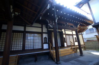梅小路公園の西にある梅林寺(ばいりん-じ)周辺には、江戸時代以来、陰陽家・土御門家の屋敷があった。寺は土御門家の菩提所になっている。山号は、清香山という。 西山浄土宗。本尊は大日如来坐像。 ◆歴史年表 創建、変遷の詳細は不明。 室町時代、戦国時代(1467/1493-1573)、創建されたともいう。安部家の菩提所である梅蓮寺を前身とするともいう。その後、土御門家が受け継ぐ。 浄土宗の西寺と合併する。 近代、1885年、西隣にあり、廃寺になった天台宗か禅宗の法蔵寺を合併したともいう。 ◆土御門泰邦 江戸時代中期の公卿・陰陽師・暦法家・土御門泰邦(つちみかど-やすくに、1711-1784)。男性。父・陰陽家・安倍晴明の末裔・土御門泰福(やすとみ)の末子。兄・泰連の養子。1722年、陰陽頭(かみ)、1746年、治部卿、1750年、従三位。8代将軍・徳川吉宗の発議による西洋流天文学の宝暦改暦に際し、幕府天文方・西川正休(まさよし)の新暦法稿本を退け、改暦の主導権を握る。1754年、陰陽頭になる。宝暦暦を作成した。1755年より、宝暦暦は実施された。1756年、天文博士、1759年、陰陽頭、1771年、兵部(ひょうぶ)卿を歴任した。1771年、日食予測の不備により、宝暦暦に修正が加えられる。宝暦暦法を記した『宝暦暦法新書』『新暦提要簡法』。74歳。 没後、1797年、寛政暦への改暦が行われた。 墓は梅林寺(下京区)にある。 ◆土御門晴雄 江戸時代後期の公卿・陰陽家・土御門晴雄(つちみかど-はるお/はれお/はれたけ、1827-1869)。京都の生まれ。父・土御門晴親。子に土御門晴栄、妹に土御門藤子。1839年、元服、1842年、父を継いで陰陽頭になる。1849年、右兵衛佐を兼ねる。1858年、廷臣八十八卿列参事件に参加し、14代将軍・徳川家茂の就任式に勅使として江戸城に派遣された。1859年-1868年、民部卿に就く。1868年、新政府に請願し、旧幕府の天文方を廃止させ、測量・天文などの管轄権を陰陽寮が掌握することに成功する。太陽暦導入に反対し、天保暦を改暦した太陰太陽暦の継続を提案した。43歳。 没後、1870年、陰陽寮は廃止され、土御門家陰陽道の最後の当主になる。 墓は梅林寺(下京区)にある。 ◆土御門藤子 江戸時代後期-近代の公家・土御門藤子(つちみかど-ふじこ、1842?- 1875)。ふぢ、邦子、通称は澄姫、桃の井。京都の生まれ。父・土御門晴親の4女。第120代・仁孝天皇の典侍・橋本経子(後の観行院)付の女官として京都御所に上がる。1846年、経子が和宮(静寛院宮)を出産し、和宮の乳母になる。1860年、14代将軍・徳川家茂への和宮降嫁により江戸に移る。江戸城大奥で上臈御年寄(じょうろうおとしより)になり、桃の井と称した。和宮側近として、観行院、庭田嗣子らと和宮を擁護し、大奥老女と対立した。1868年、新政府軍の江戸進軍決定に際し、徳川家存続に奔走する。和宮の使者として、橋本実麗・実梁父子に、和宮の直書・慶喜の嘆願書を持参する。桑名・光徳寺で実梁に会う。京都御所で徳川家存続の内旨を得た。再び、和宮の命により実梁と進軍猶予を求めて交渉した。1869年、和宮とともに京都へ戻る。日記『土御門藤子日記』。 墓は梅林寺(下京区)にあり、「邦子」と刻まれている。 ◆仏像 ◈大日堂に、「大日如来坐像」、右脇侍に「瑠璃光薬師如来坐像」、左脇侍に「地蔵菩薩立像」が安置されている。 ◈大日如来坐像と地蔵菩薩立像は、旧西寺食堂(じきどう)の本尊だったという。 ◆文化財 ◈中庭に、石盤の「大表土台」が置かれている。73㎝四方、高さ15㎝あり、暦作りのための日時計として使われたという。四角い盤の中央部に円形の穴が開けられ、東西北に細い線が刻まれている。南には太い溝が彫られている。江戸時代の安倍(土御門)泰邦が製作し、盤の東側面に江戸時代「寛延四年四月」(1751年)、西側面には「安倍泰邦製」と刻まれている。 ◈江戸時代の法具、磬子(きんす)には、「厚空東学上人代 蔓延二(1861年?)辛酉年三月 土御門殿御寄付」と記されている。 ◆遺構 周辺には土御門家の邸宅があった。辻向かいの円光寺、その北西の稲住神社付近も邸内にあった。 このため、円光寺には天文観測器、渾天儀の礎石などが残されているという。また、稲住神社の祭神は、土御門家の先祖であり陰陽師・安倍晴明を祀る。 ◆じじばい講 1月8日にもっとも近い日曜日に、当寺で行われる「じじばい講」(京都市指定無形民俗文化財)が催される。 旧梅小路村旧家に伝わるという。丸太を青竹で叩きつける祭礼をいう。厄除けと豊作を祈願する農耕行事の「おこない」の一種とされる。 起源については不明という。かつて西隣にあり、その後、廃寺になった天台宗か禅宗の法蔵寺で行われていた修正会(しゅしょうえ)にあるともいう。雷鳴の多い年は豊年とされた。青竹で丸太棒を叩く儀式は雷鳴を意味した。 伝承がある。村の薮に棲んでいた大蛇が農作物を荒した。このため、丸太を大蛇に見立てて叩くことで、被害を祓う祈祷に始まるともいう。また、平安時代、空海(774-835)が東寺に居た頃、梅小路付近