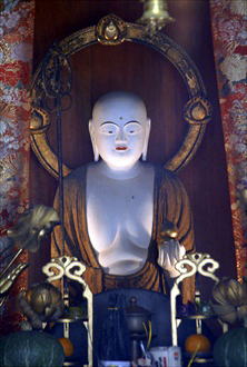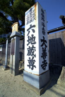 外環状線(府道7号線)の六地蔵(ろくじぞう)交差点近くに、大善寺(だいぜん-じ)がある。東に醍醐に向かう旧奈良街道、黄檗・宇治へ向かう街道筋に当たり、六地蔵付近は交通の要衝地になる。 山号、院号は法雲山浄妙院という。「六地蔵」「伏見地蔵」と通称される。「六地蔵めぐりの根本道場」であり、六地蔵信仰の発祥地として、付近の地名由来になった。また、「浄妙寺」「木幡(こはた)寺」といわれたともいう。 浄土宗、本尊は阿弥陀如来。 京洛六地蔵巡り第1番札所、地蔵菩薩(五七日)は京都十三仏霊場めぐりの第5番札所。 ◆歴史年表 飛鳥時代、705年、藤原鎌足の子・定慧(じょうえ)により開創され、法雲寺(ほううん-じ)と称したという。(寺伝) 平安時代、852年、園城寺(三井寺)の智証により、勅を奉じて伽藍修造が行われた。6体の地蔵尊を安置し、六地蔵(浄妙寺とも)と称したという。天台宗に改宗したという。 また、浄妙寺(六地蔵村東南墓地付近)は、智証の開基により、藤原家基により建立されたという。寺号は、家基の院号・浄妙院によるともいう。その後、六地蔵村に移されたともいう。(『雍州府志』) 僧・信西(1106-1160)は、地蔵6体をこの地に安置したともいう。 1157年/保元年間(1156-1159)、都で疫病が流行した際に、第77代・後白河天皇は、都の出入り口に6体の地蔵尊を安置するように平清盛に命じた。清盛は、京洛の街道口6カ所(また七道の辻の7カ所とも)に、それぞれ六角円堂を建てた。地蔵菩薩を安置し、西光法師に供養させたという。 中世(鎌倉時代-室町時代)、兵火により焼失し、度々荒廃した。 室町時代、応仁・文明の乱(1467-1477)後に衰退する。 1561年/永禄年間(1558-1570)、頓誉琳公により中興され、浄土宗に改宗された。また、阿弥陀仏、地蔵を安置し、大善寺と改めたともいう。 近世(安土・桃山時代-江戸時代)、周辺は六地蔵と呼ばれた。 江戸時代、1703年、焼失する。 1704年、勧修寺宮殿を移築し、再建したという。 ◆定慧 飛鳥時代の僧・定恵(じょうえ、643-666)。男性。中臣真人(なかとみの-まひと)、定慧、貞恵。父・中臣鎌足(藤原鎌足)、弟・藤原不比等。653年、大使吉士長丹(きしの-ながに)に従い遣唐に渡る。長安懐徳坊の慧日道場に住し、神泰法師に師事した。遊学し内経外典に通じたという。665年、百済を経て唐の劉徳高とともに帰国した。666年、大原(奈良県明日香村)で亡くなる。百済人による毒殺によるという。23歳。 ◆円珍 平安時代前期の僧・円珍(えんちん、814-891)。男性。俗姓は和気(わけ)氏、智証大師。讃岐国(香川県)の生まれ。母は空海の姪に当たる。第12代・景行天皇の15代孫という。829年、15歳で比叡山に登り天台座主・義真に師事し『法華経』『金光明経』を学ぶ。19歳で天台宗年分度者になる。833年、比叡山戒壇院で菩薩戒を受け、12年間籠山行に入り学頭、内供奉に任じられる。838年、十二年籠山中に黄不動尊の示現に遭う。845年、大峯、葛城、熊野三山、那智の滝に参籠し、三井修験道の起源となる。846年、比叡山真言学頭に推される。850年、伝燈大法師位に叙せられる。853年、唐に渡る。福州・開元寺で印度那蘭陀寺の般若多羅三蔵により悉曇 (梵字)を学ぶ。温州の同寺で『法華経』などを授けられた。また、天台山国清寺で最澄の遺跡を訪ね、最澄が建立した禅林寺(天台日本国大徳僧院)を再興した。止観堂とも呼ばれ、日本の留学僧が利用した。各寺で止観(禅)、天台、密教などを学ぶ。6年後の858年、経典類441部1000巻を携え帰国する。859年、園城寺長吏になる。866年、三井寺別当職(長吏)に任じられる。四国金倉寺、比叡山の山王院に住し、868年、第5世座主となる。天台別院・園城寺(三井寺)を再興し、伝法灌頂の道場とした。唐より請来の経籍を唐坊に納める。888年、三カ条の遺誡を描き円仁門徒との親交を諭した。890年、少僧都、891年、比叡山山王院で亡くなる。著『法華論記』『授決集』など。78歳。 天台寺門宗の宗祖天台宗寺門派の祖。入唐八家(最澄・空海・常暁・円行・円仁・恵運・円珍・宗叡)の一人。弟子は500余人、教えを受けた人は3000人といわれる。没後の929年、第60代・醍醐天皇より智証大師の諡号(大師号)を贈られる。 ◆信西 平安時代後期の公家・僧の信西(しんぜい、1106-1160)。男性。俗名は藤原通憲(みちのり)。法号は円空、信西。父・一﨟の蔵人(六位蔵人の筆頭)藤原実兼の長男。7歳で、高階経敏の養子になる。1127年、六位蔵人から従五位下に進み、院判官代に補されて鳥羽上皇(第74代)に近仕し、日向守に任じられた。1135年頃、紀伊守藤原兼永の娘・朝子を娶り、朝子が第77代・後白河天皇の乳母になり、天皇即位後に勢威を伸ばした。1143年、少納言に抜擢された。1144年、藤原に復姓し出家し、信西と称した。1156年、保元の乱に関与し、後白河天皇方を勝利に導く。天皇親政をうたい新制(保元新制)を発布した。1158年、天皇が第78代・二条天皇に譲位して上皇になり、上皇・天皇の近臣間で対立激化した。1159年、平治の乱で源義朝、藤原信頼が挙