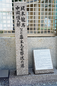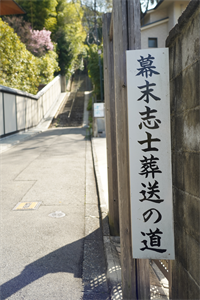![]() ![]() ![]() ![]() 「志の聖地 霊明神社」「神葬の原郷」 ![]() ![]() 社務所 ![]() 本社 ![]() 本殿 ![]() 猿田彦御神石 ![]() ![]() 猿田彦御神石 ![]() さざれ石 ![]() 手水 ![]() ![]() 境内からの京都市内の眺望 ![]() 霊鷲山正法寺参道・霊山正法寺道 ![]() この奥(左手)に墓地がある。右手に正法寺がある。 ![]() 【参照】幕末志士葬送の道(霊鷲山正法寺参道、霊山正法寺道)、霊明神社へ続く急な石段 ![]() 【参照】霊明神社西京都城 ![]() 【参照】霊明神社西京都城 ![]() 【参照】坂本龍馬像 ![]() 1868年の霊明神社本殿『隠玖免岐(おくずき)集』)、京都龍馬会銘板より ![]() 【参照】「幕末志士葬送の道」の碑、霊鷲山正法寺参道(霊山正法寺道)沿いにある。2010年、特定非営利活動法人、京都龍馬会が建立した。 ![]() 【参照】「幕末志士葬送の道」 【参照】付近の墓地、もとは土佐高知藩神霊社が建ち、東側(左手)に吉村虎太郎ら天誅組志士の墓があった。墓は現在、霊山護国神社内に遷された。 |
