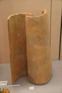 ![]() 「史跡栗栖野瓦窯跡」の石標 史跡栗栖野瓦窯跡![]() 史跡指定地域 ![]() 【参照】来栖野瓦窯6号窯出土の平瓦、1985年(京都市考古資料館-京都市埋蔵文化財研究所蔵) ![]() 【参照】丸瓦(京都市考古資料館-京都市埋蔵文化財研究所蔵) 【参照】「栗」銘の丸瓦(京都アスニー) |