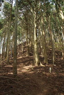 京北周山町の西に位置する黒尾山(標高509.4m)の東峰、城山(標高480m)の山頂付近一帯の杉林の中に、山城・周山城(しゅうざん-じょう)の遺構が残されている。明智光秀が築城し、ほぼ築城時の状態で残されている。 城は桂川と弓削川の合流地点の西、山の頂にあり、南北に走る周山街道(西の鯖街道)を一望することができる。周山の名は、光秀が名付けたという。 ◆歴史年表 安土・桃山時代、1578年、明智光秀は亀山城を築城する。 1579年、明智光秀の丹波攻略により宇津(うづ)城は開城する。同年/1579年-1581年、周山城が築城されたともいう。 1580年/1581年頃、明智光秀は宇津氏らの土豪と、京都と若狭を結ぶ周山街道の抑えのために周山城を築く。明智光忠を城主に配した。 1581年、旧8月、光秀は、茶人・津田宗及とともに、山上の本丸天守で十五夜の月見の茶会を催した。(『津田宗及茶湯日記』) 1582年、本能寺の変後、光秀の死後に、城は光秀残党により焼かれ廃城になったという。また、羽柴(豊臣)秀吉の持ち城になり、加藤光泰が城代として入城したともいう。 1584年、旧2月、秀吉が城を視察したという。(『兼見卿記』)。この頃まで、城は秀吉配下の武将により使用されていたともいう。 天正年間(1573-1592)、廃城になったとみられている。 現代、2017年度より、京都市は調査を行う。 2024年、京都市は、城門跡を発見したと発表した。 ◆明智 光秀 室町時代後期-安土・桃山時代の武将・明智 光秀(あけち-みつひで、1528?-1582)。男性。名は十兵衛、惟任日向守(これとうひゅうがのかみ)。美濃(岐阜県)の生まれ。父・明智光綱。美濃の土岐氏支流ともいう。娘は細川ガラシャ。初め斎藤氏に仕えた。越前・朝倉義景に仕え、1566年、織田信長に仕えた。1567年、滝川一益に従い北国征伐に加わる。1568年、信長入京に当たり、政務に当り足利義昭のために公家側に働きかけた。1569年、公家寺社領仕置などに携わる。信長と義昭の対立を仲介する。1570年、信長の摂津、近江の出陣に従う。1571年、近江・坂本城主になる。1572年、浅井氏の小谷城包囲に参加する。1573年、越前朝倉氏攻略に加わった。1574年、大和多聞山城を守備し、美濃、河内に転戦した。1575年、功により惟任日向守と称した。信長の命で丹波の攻略に着手し、福知山城を築城した。年貢を軽減するなど民に慕われた。1577年頃、亀山城を築造する。1579年、強く抵抗した八上城の波多野秀治らを下して丹波平定した。福知山と命名、城を改修する。1581年、因幡鳥取城攻めに羽柴(豊臣)秀吉を援け、丹後の検地を断行する。1582年、甲州・武田勝頼攻撃に従う。信長より徳川家康の慰労を命じられ、さらに、秀吉の備中高松城包囲に救援を命じられる。光秀は反発し、亀山城(亀岡市)に入り、愛宕山に詣り謀反を決意した。備中出陣の名目により、6月1日、兵1万3000を率い、亀山城を発した。老ノ坂で天下取りを表明する。2日、本能寺を急襲し、信長を自刃に追い、二条御所の信忠を自滅させた。(本能寺の変) 。13日、取って返した秀吉との山崎の戦いに敗れる。一旦、勝竜寺城に入る。坂本城に落ち延びる途中、小栗栖(おぐるす)で土民の襲撃により傷を負い、自刃して果てたという。「三日天下」といわれた。故実、典礼に通じた。法名は秀岳宗光。56歳。 1578年、光秀はこの地周山を訪れている。北桑南部では、宇都(宇津)右京大夫が四代に渡り支配し、暴力による悪政を敷いていたという。1579年、光秀は宇都(宇津)城を攻め、戦うことなく降伏させる。戦略拠点にするため、城の修復を急いだ。この際に、周辺の神社仏閣の石垣や墓石も徴用 し、資材として使ったという。城は、周山城と名付けられた。また、亀山にも別の城郭を構えた。 ◆明智 光忠 室町時代後期-安土・桃山時代の武将・明智 光忠( あけち-みつただ、1540-1582)。男性。通称は次右衛門、二郎、二郎四郎。父・明智光久(明智光秀の叔父)。光秀の従弟。妻は光秀の2女、父とともに光秀に仕えた。光秀の城攻略に伴い、1577年、亀山城に留守居として入る。1579年、丹波八上城の落城で城代として入城した。1580年/1581年頃、周山城の城主になる。1582年、6月、本能寺の変で二条城を攻め、鉄砲で重傷を負い知恩院で療養したという。山崎の戦いで、敗戦を知り近江・坂本城で一族とともに自害した。剃髪し、長閒斎(ちょうけんさい)と号した。43歳。 明智五宿老の一人。 ◆津田 宗及 安土・桃山時代の豪商・茶人・津田 宗及(つだ-そうぎゅう/そうきゅう、?-1591/1592)。男性。隼人、屋号は天王寺屋、通称は助五郎、更幽斎、道号は天信。堺の生まれ。父・豪商・津田宗達の嫡男。天王寺屋の3代目を継ぐ。畿内の武将、本願寺坊官・下間氏などと関係した。茶を父・宗達、武野紹鴎(たけの-じょうおう)に学び、後に織田信長・豊臣秀吉に仕え、御茶頭(おさどう)になる。1558年、名物茶入の切型を作る。政商として畿内・九州で活動したとみられる。山城宇治に領したという。1566年より、宗及と改称した。1568年、信長の入洛後に信